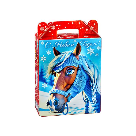 Интересный вариант новогоднего подарка – «Фаворит». Он представлен в разделе Картон. Отлично подойдет на подарок в 2026 году с символом Лошадь. Внутри такого презента находится кондитерский набор весом 700 граммов.