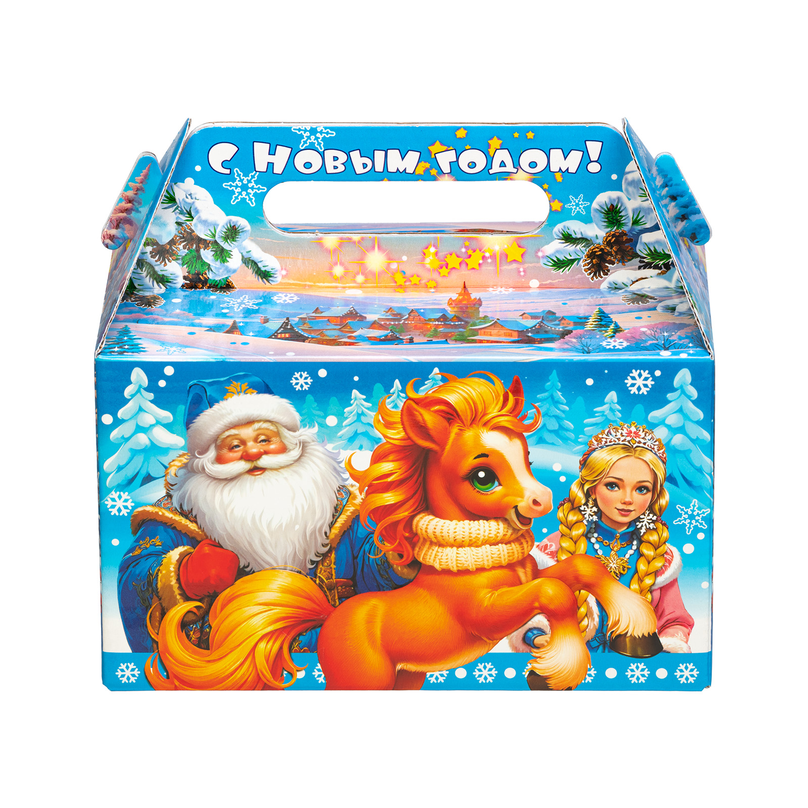 Интересный вариант новогоднего подарка – «Огоньки (Полезный состав)». Он представлен в разделе Картон. Отлично подойдет на подарок в 2026 году с символом Лошадь. Внутри такого презента находится кондитерский набор весом 1000 граммов.